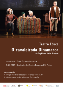 10.01.2025 – O cavaleiro da Dinamarca, pelo Teatro Educa, no Centro Paroquial S. Pedro. Turmas do 7.º e do 8.º anos do AELdF.
